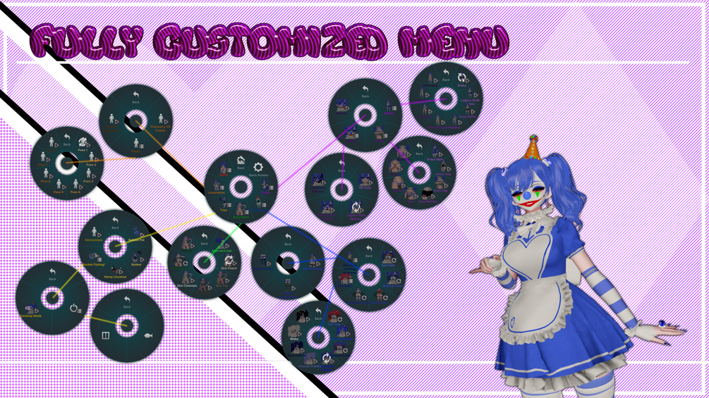 - Custom colored menu featuring pictures of the relevant parts of the avatar for its buttons!