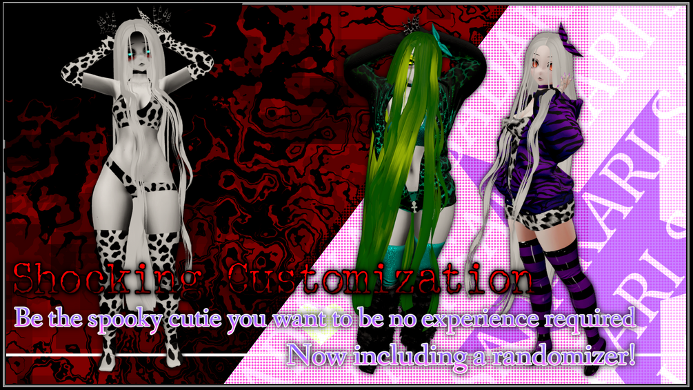 An all in one VRChat avatar featuring multiple outfits for any occasion and packed full of cosmetic adjustments to drastically change your look on the fly and to suit any environment this time with a randomizer button! Not sure what you want to look like? Just spam a button till you like it!!!